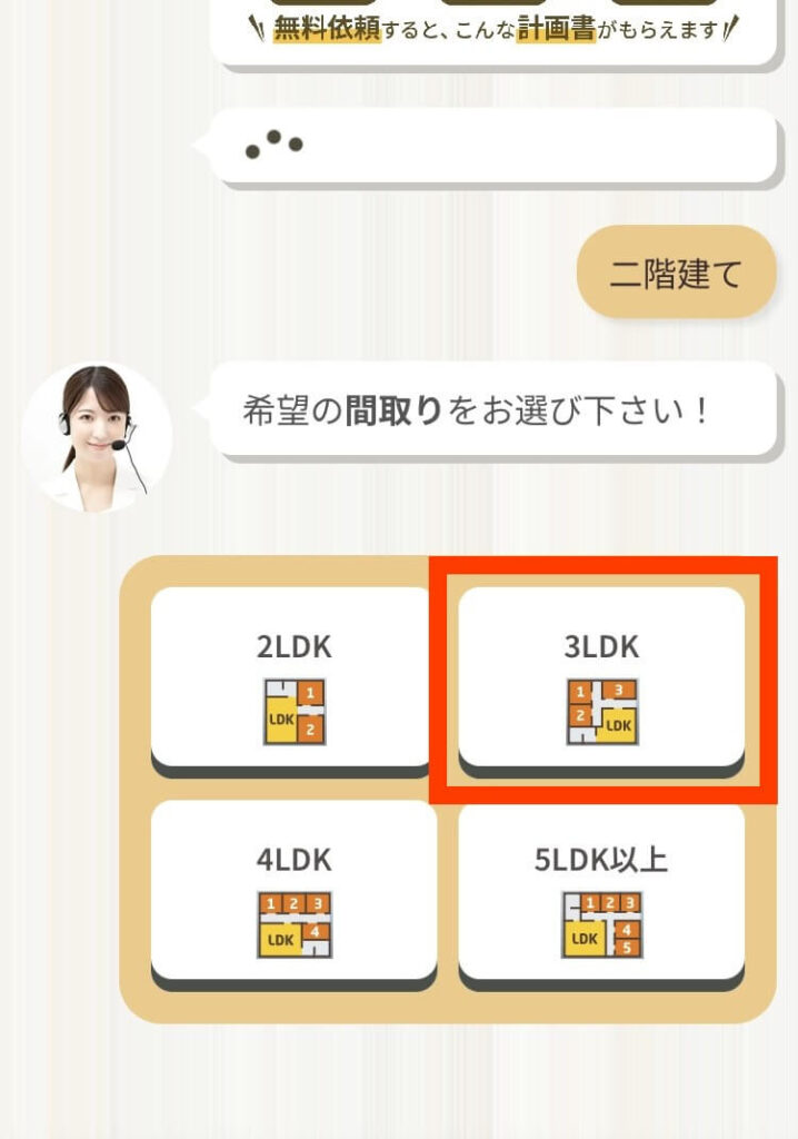 請求して届く資料は “希望条件として入力した情報をもとに作成” されているので、より自分たちにとっての最適な建築プランを見つけやすくなっているのも特長です。(請求依頼時に希望を入力する欄があります)
